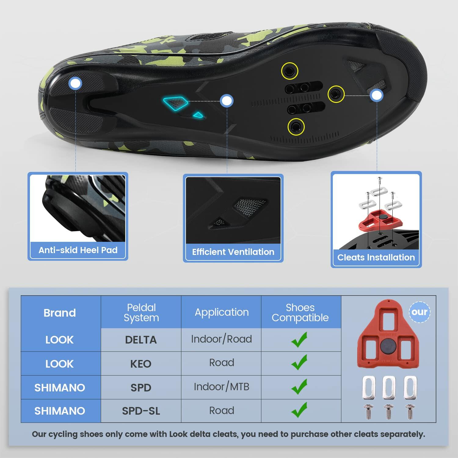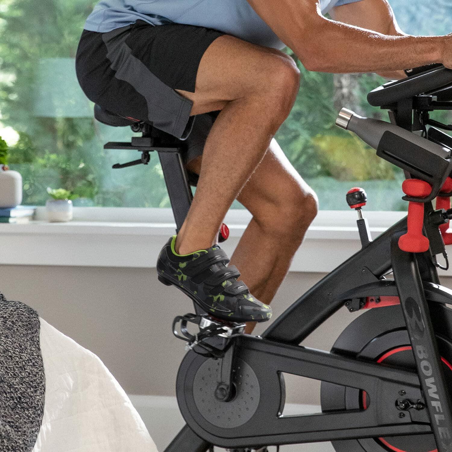 Mens Cycling Shoes Peloton Compatible - Delta Clip in Spin Bike Shoes with SPD Cleats - Perfect for Indoor Outdoor Road Bicycle Racing - Camo Green Size 7